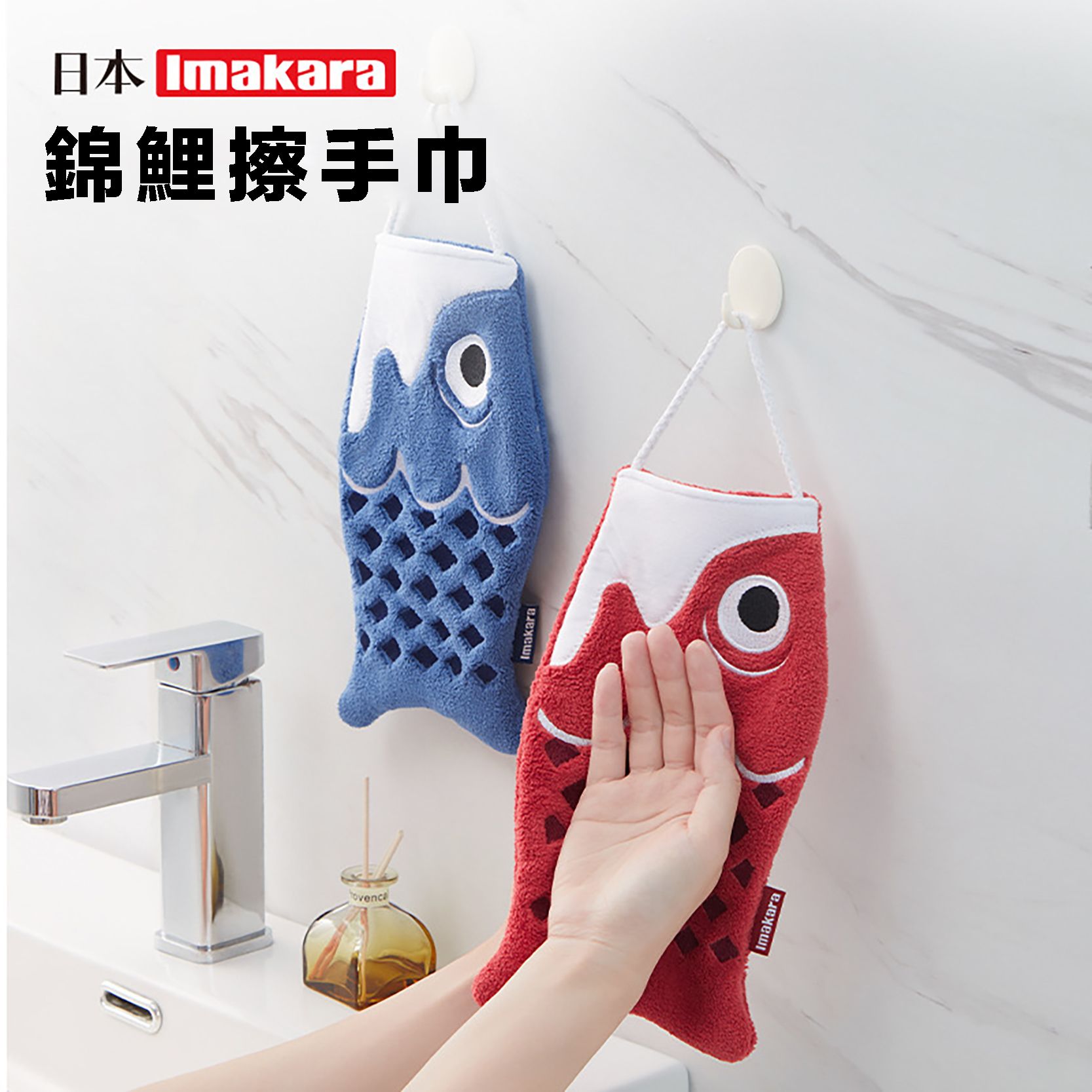居家生活 日本錦鯉超强吸水浴廁可掛式擦手巾組 一組2入